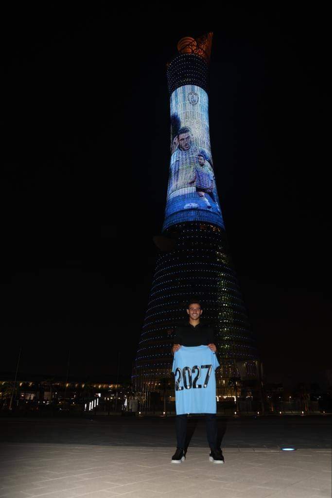 ترحاب خاص.. صورة حمدي فتحي تزين برج الشعلة في العاصمة القطرية