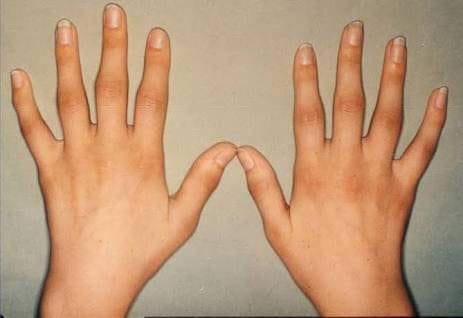 تورم بمفاصل اليدين في نفس الوقت بالإضافة للمفاصل الأخرى بالطرفين العلويين والرجلين.