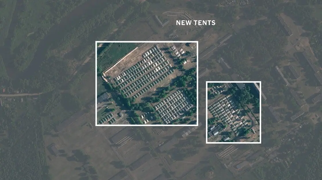 وكانت صحيفة نيويورك تايمز قد نشرت صور الأقمار الصناعية الجديدة التي حللتها صحيفة "نيويورك تايمز" أنه تم نصب مئات الخيام الكبيرة في قاعدة عسكرية غير مستخدمة في بيلاروسيا في الأيام الخمسة الماضية.