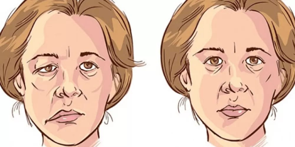 - سقوط نصف الوجه نتيجة الشلل وانحرافه.