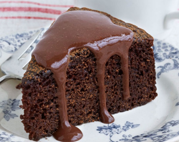 - قومي بعمل ثقوب في الكيكة ثم صبي فوقها صوص الشوكولاتة السابق أخذه في الثلاجة.