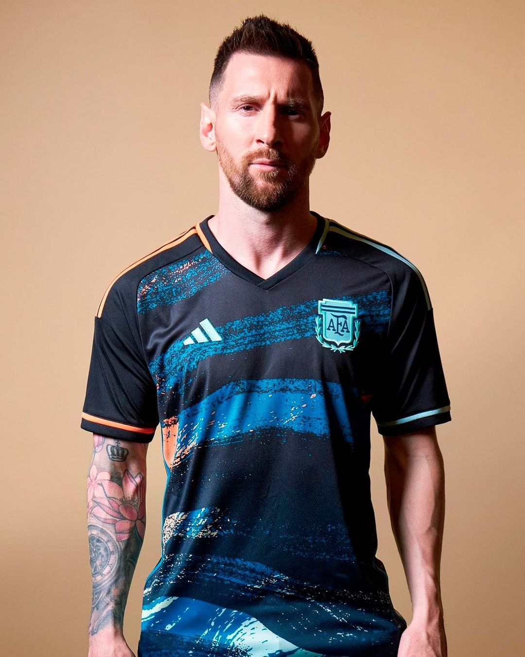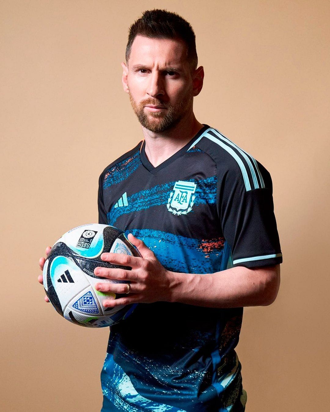 وتم الكشف القميص الذي سيظهر به منتخب سيدات الأرجنتين، ولكن عبر النجم ليونيل ميسي، الذي نفذ جلسة تصوير مرتديًا القميص الأزرق الغامق.