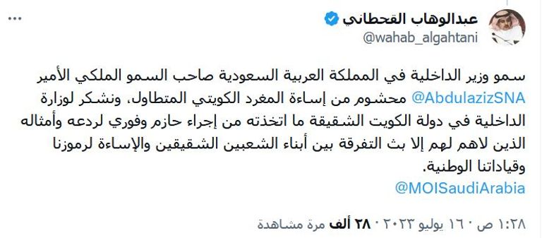 جاء ذلك بعد بيان رسمي من وزارة الداخلية الكويتية ردا على إساءة مغرد للأمير السعودي وزير الداخلية الأمير عبدالعزيز بن سعود بن نايف بن عبدالعزيز، قوبل بترحيب كبير من مغردي البلدين، بعد عاصفة غضب.