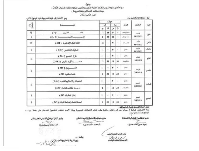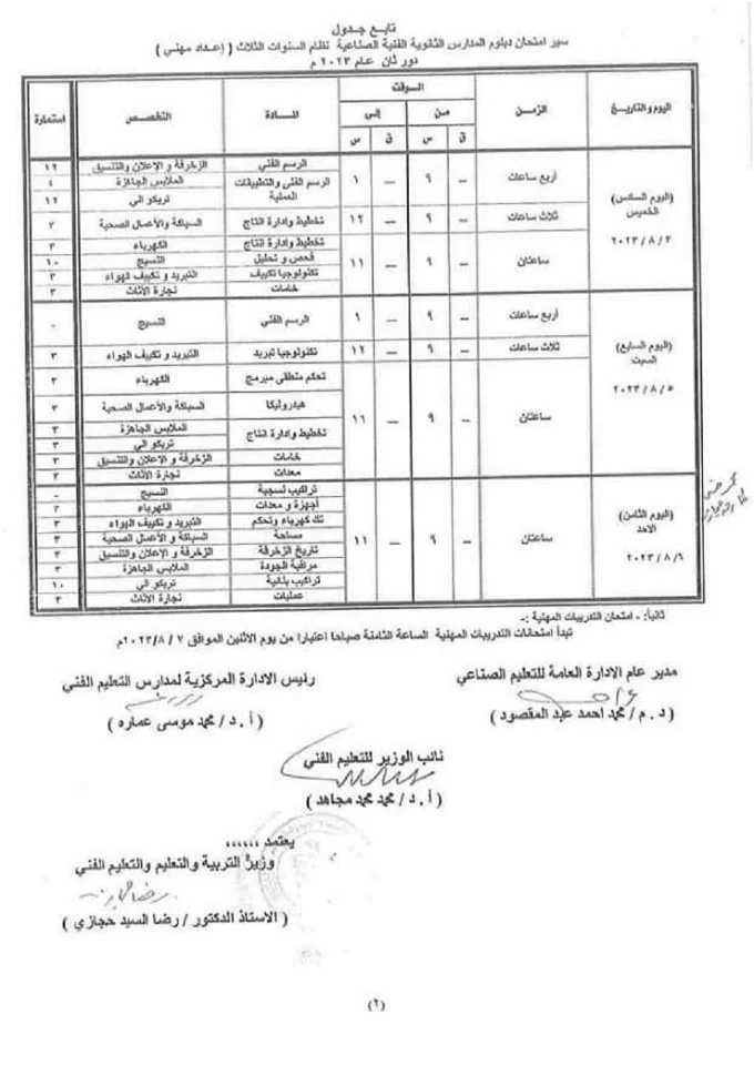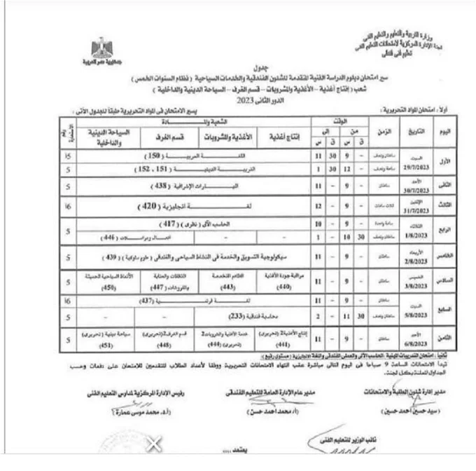 جداول امتحانات الدور الثاني للدبلومات الفنية 2023