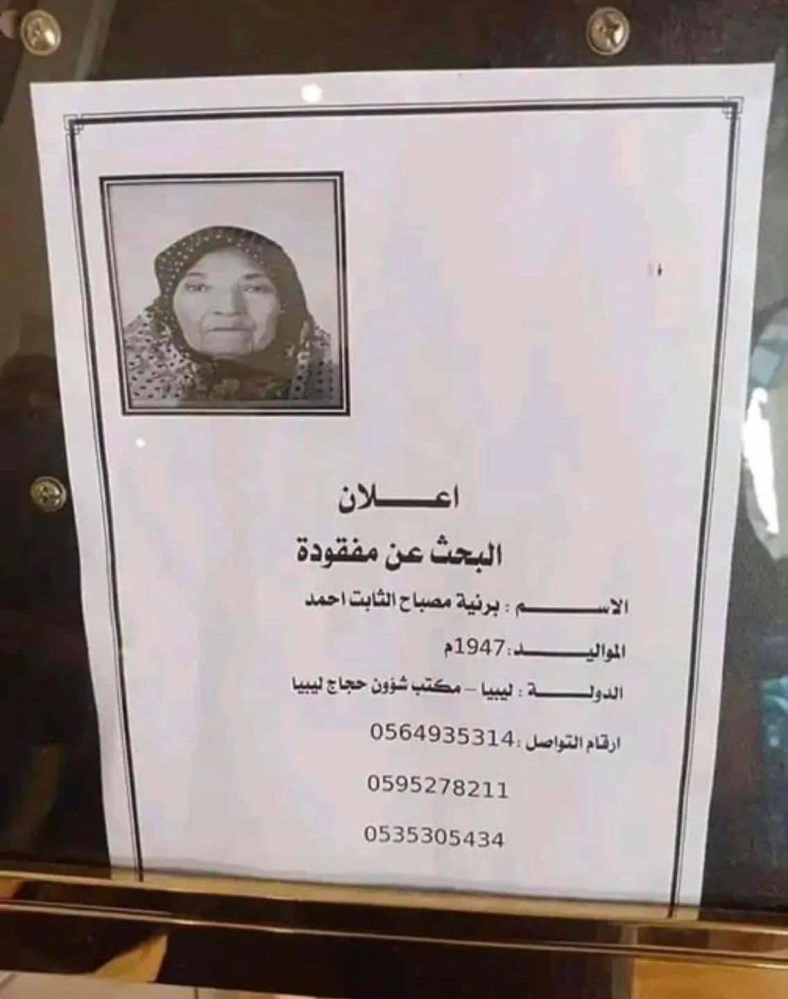 تصدرت سيدة ليبية مواقع التواصل الاجتماعي، وذلك بعد فقدانها خلال رحلة الحج خلال الأيام الماضية.