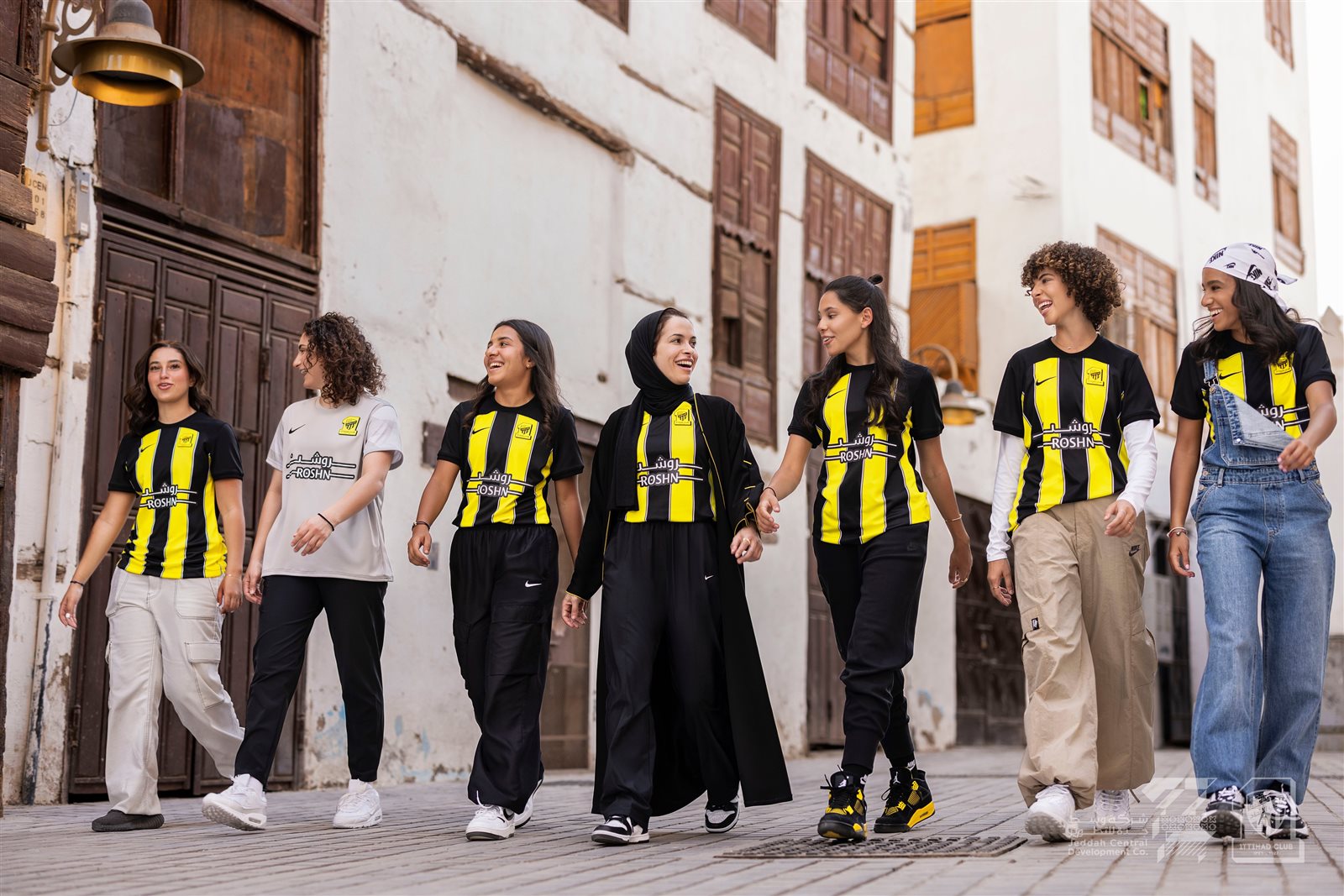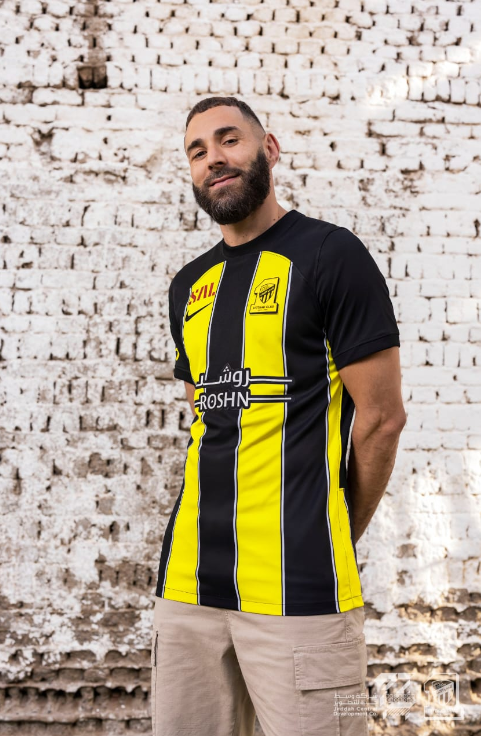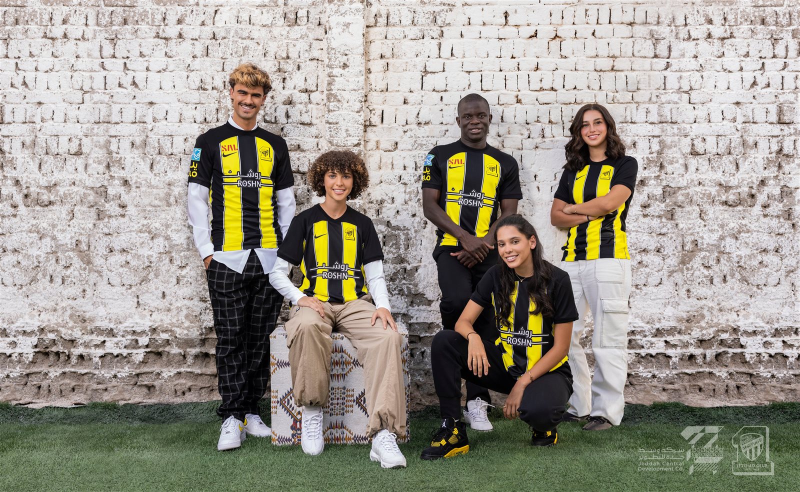 وظهر النجوم كريم بنزيما ونجولو كانتي وجوتا، صفقات نادي الاتحاد الجديدة، رفقة لاعبات فريق كرة القدم النسائية بالنادي، في جلسة تقديم قميص الموسم الجديد 2023-2024.