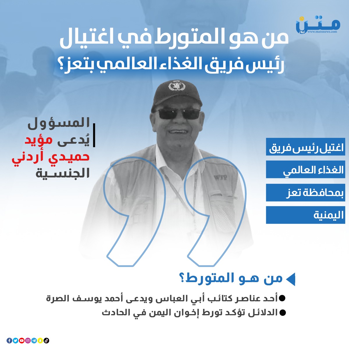 من هو المتورط في اغتيال رئيس فريق الغذاء العالمي بتعز؟ (إنفوجراف)