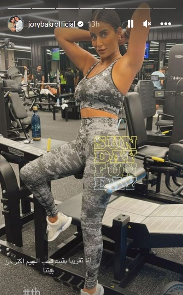 كما شاركت الفنانة المصرية مقطع فيديو عبر خاصية "ستوري"، ظهرت فيها وهي تحمل ثقلًا داخل صالة الجيم، وترتدي ملابس تكشف بطنها.