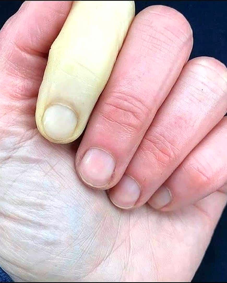 - تحول الأجزاء المصابة من الجلد للون الأبيض ثم تتحول للأزرق يتبعها شعور بالبرودة والخدر خلال نوبة المرض.