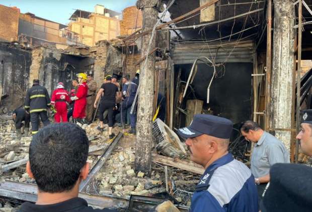 حساب مديرية "الدفاع المدني" العراقي ينشر صورا للحريق في أحد أسواق مدينة كربلاء