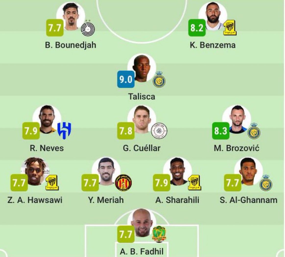 خط الهجوم: كريم بنزيما "الاتحاد السعودي"، بغداد بونجاح "السد القطري"، تاليسكا “النصر السعودي”