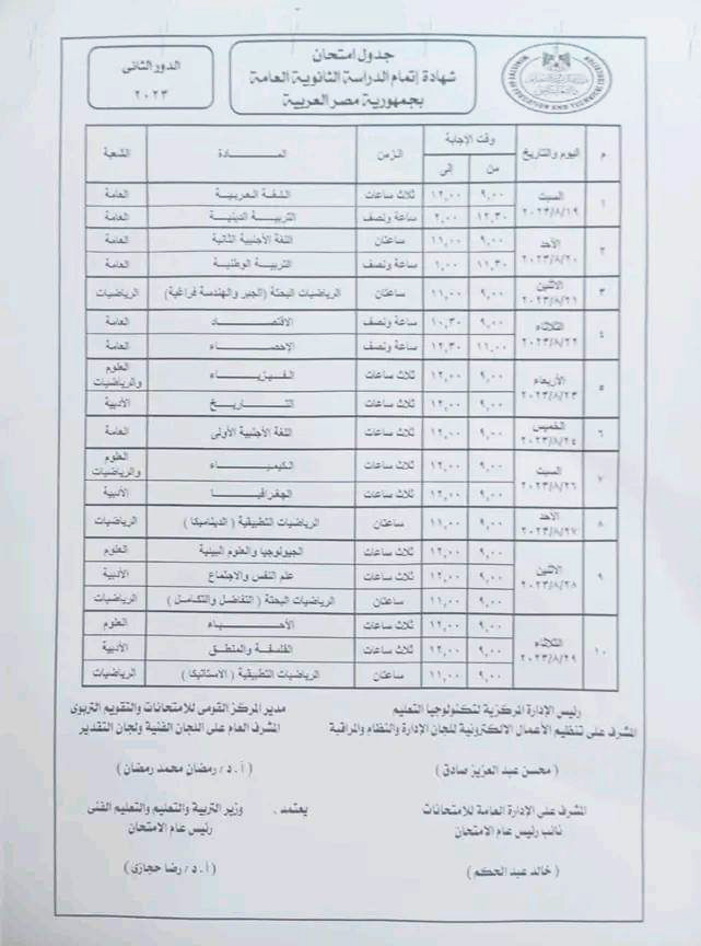 نستعرض خلال السطور المقبلة جدول الدور الثاني ثانوية عامة 2023.