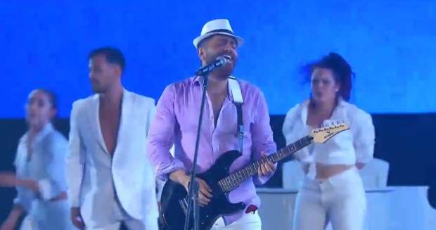 وحرص تامر حسني على المشاركة بالعزف على الجيتار خلال أدائه أغنية «فيها إيه» وسط تفاعل كبير من جمهور الحفل.