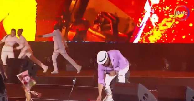 مشهد رائع حينما تلقى الفنان تامر حسني باقات الورد من جمهوره وحرص تامر حسني على التقاطه وحمله بيده لفترة قبل أن يعطيه لأحد مساعديه.