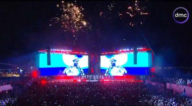صور توثق مشاهد من حفل تامر حسني في مهرجان العلمين الجديدة