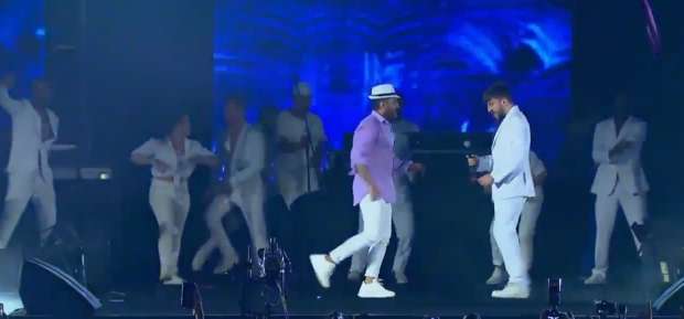 حيث شارك الفنان تامر حسني مع أحد الراقصين في فرقته الموسيقية وقدم رقصة طريفة معه تفاعل خلالها جمهور مهرجان العلمين الجديدة بشدة.