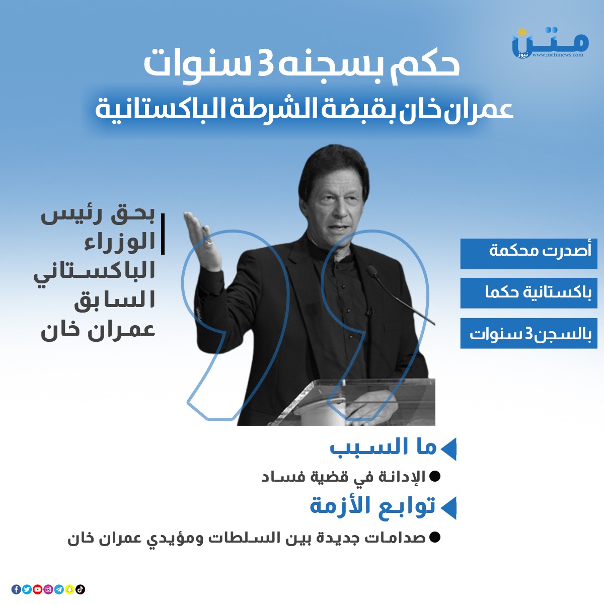 حكم بسجنه 3 سنوات.. عمران خان بقبضة الشرطة الباكستانية (انفوجراف)