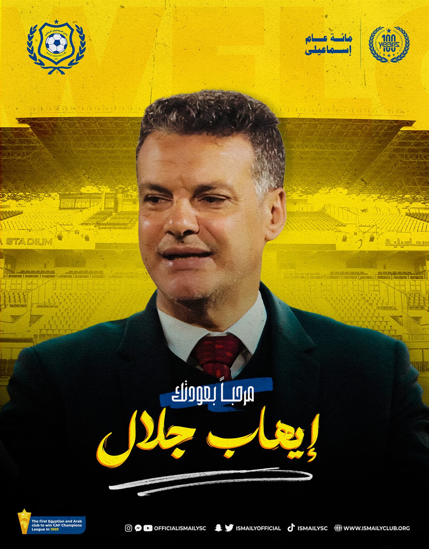 وكشف نادي الإسماعيلي عبر حساباته الرسمية على مواقع التواصل الاجتماعي اليوم، تعيين إيهاب جلال مديرا فنيا للفريق، خلفا لحمزة الجمل الذي رحل عن الفريق.