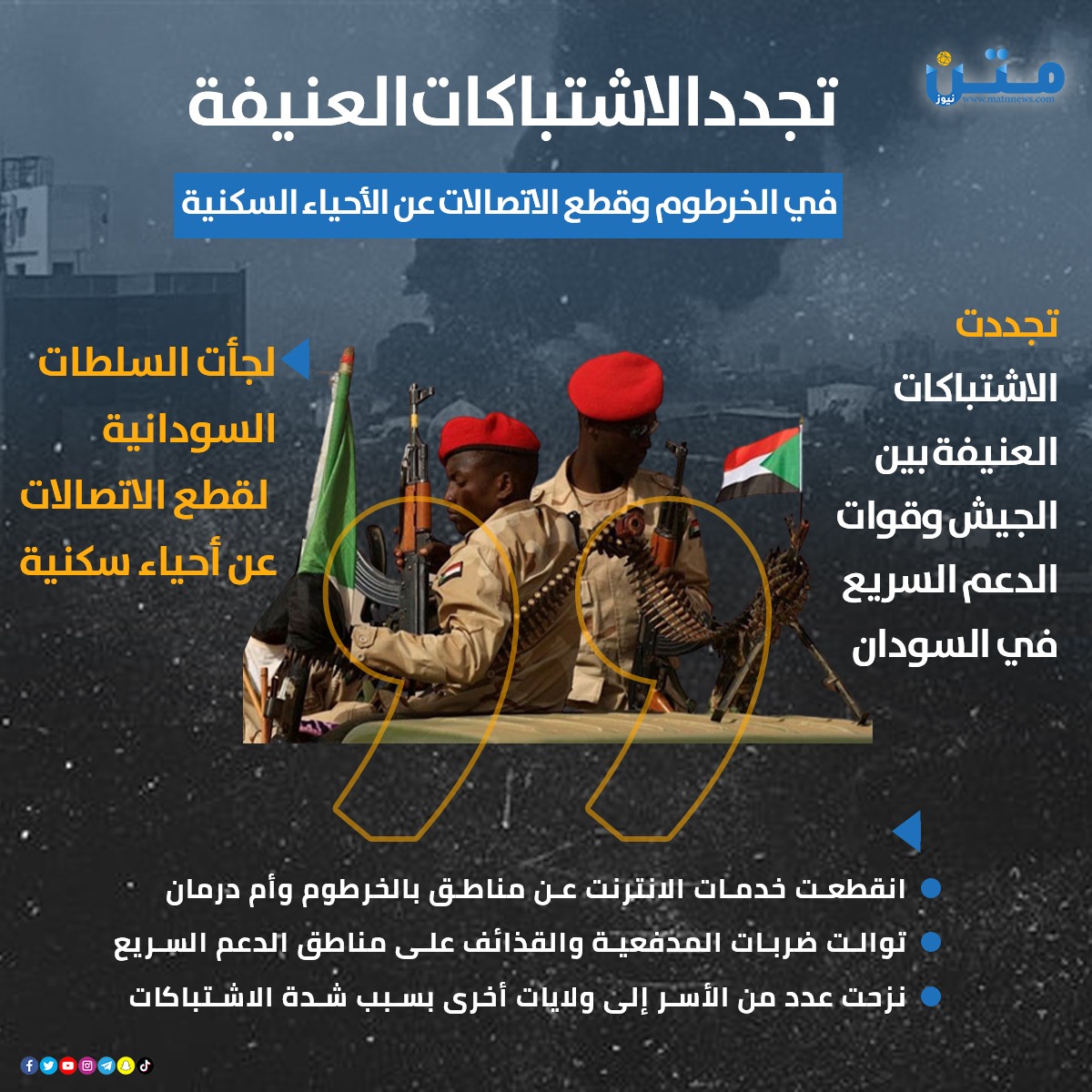تجدد الاشتباكات العنيفة في الخرطوم وقطع الاتصالات عن الأحياء السكنية (إنفوجراف)
