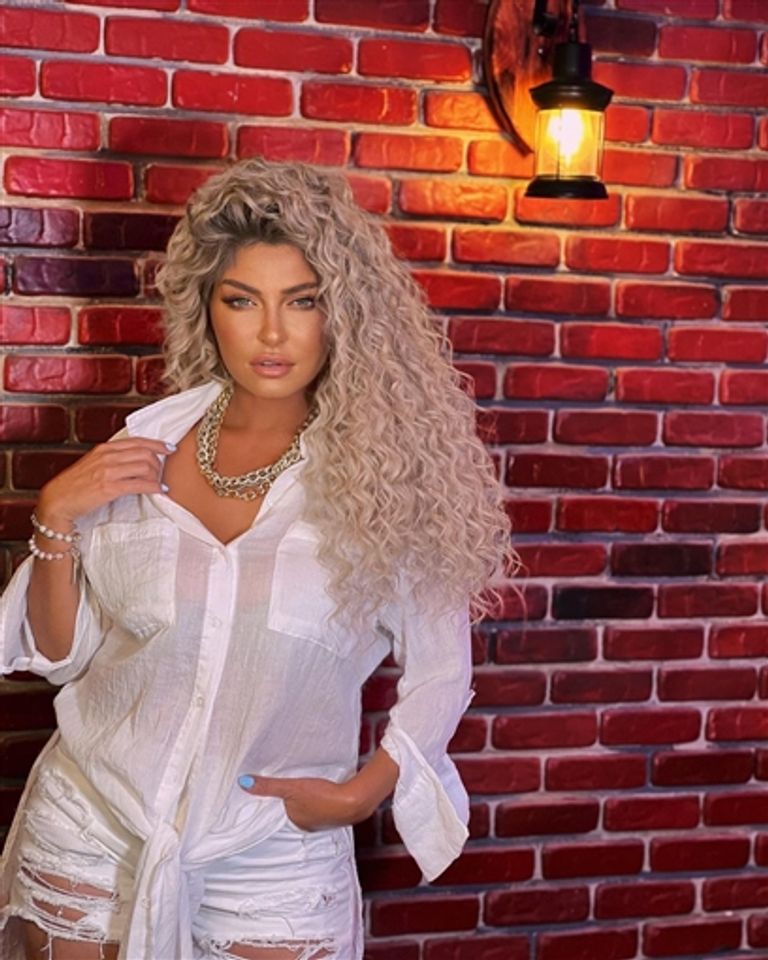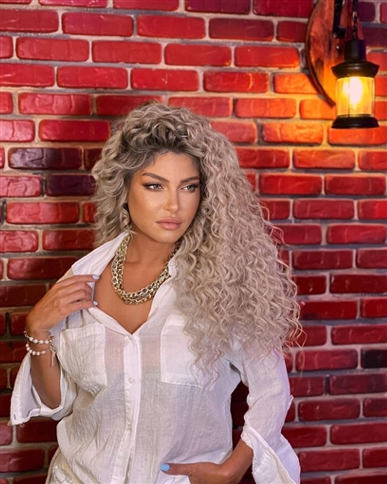 وارتدت علا غانم خلال الجلسة قميصا أبيض وبنطلونا ممزقا، ووضعت مكياجا جريئا مع تصفيف شعرها "كيرلي".