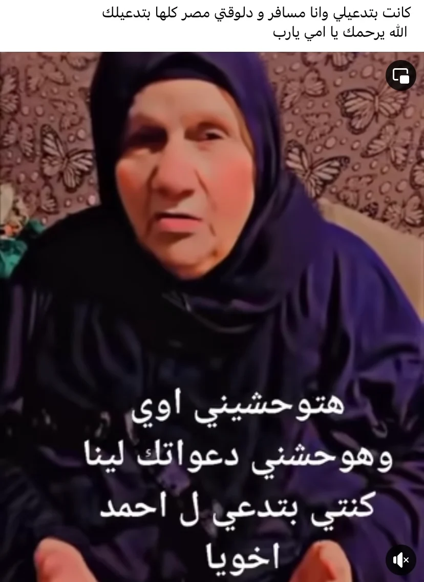 وعلق شيبه على الفيديو:" كانت بتدعيلي وانا مسافر ودلوقتي مصر كلها بتدعيلك الله يرحمك يا امي يارب".