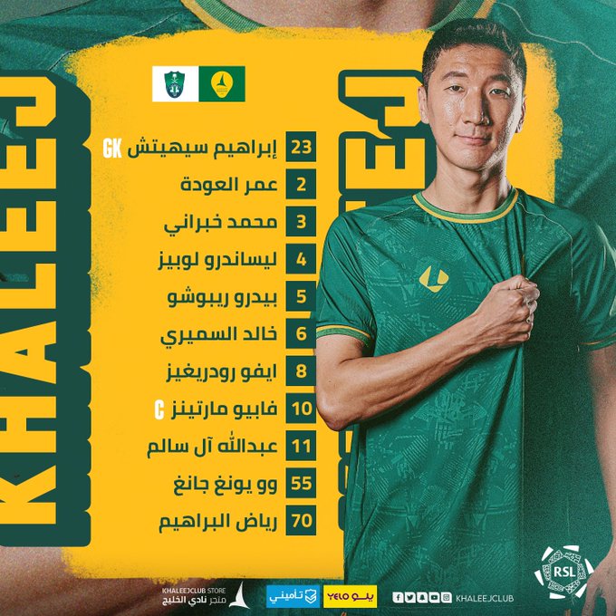 وفي المقابل، خرج الدولي المصري محمد شريف مهاجم فريق الخليج المنضم حديثًا من النادي الأهلي المصري، من قائمة المباراة.