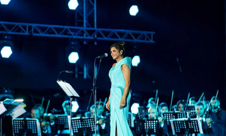 كما حرصت الفنانة المصرية على توجيه التحية للفرقة الموسيقية بقيادة المايسترو هاني فرحات.