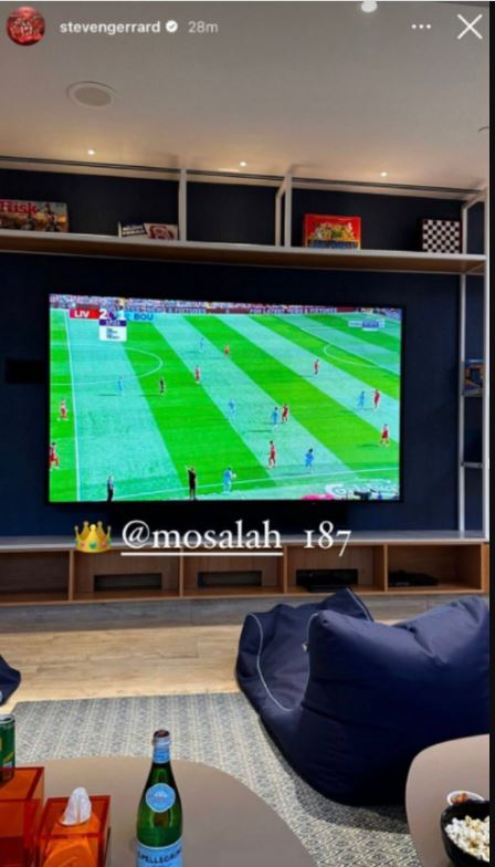 وحرص جيرارد على نشر صورة عبر "ستوري إنستجرام" خلال متابعته للمباراة، أشار خلالها إلى صلاح ورقم 187 ولوجو "تاج".