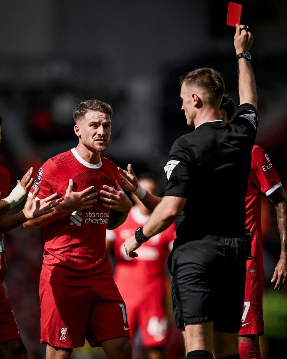 وحصل ماك أليستر على بطاقة حمراء في مباراة ليفربول وبورنموث بالجولة الثانية من الدوري الإنجليزي في الدقيقة 58 من الشوط الثاني، بعد التدخل العنيف على لاعب فريق بورنموث.