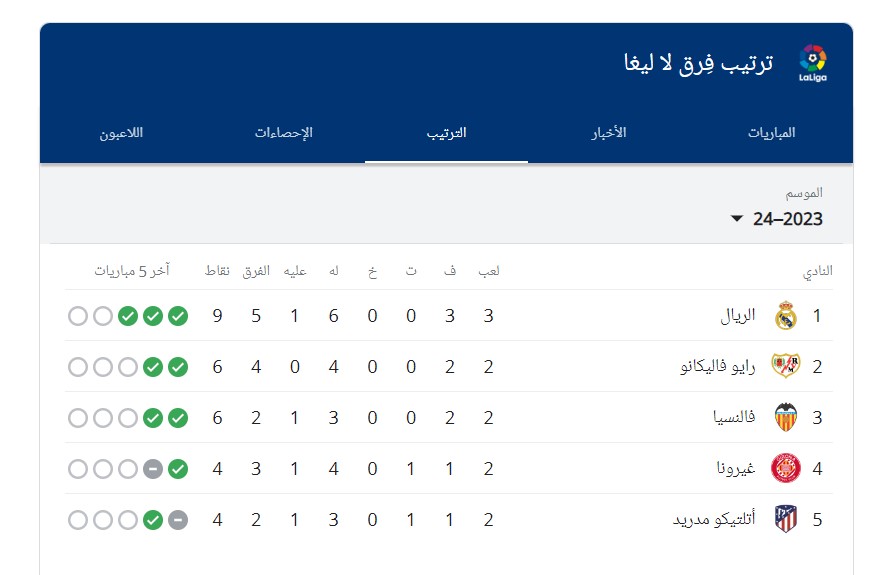 ترتيب الدوري الاسباني.. وهدافي البطولة