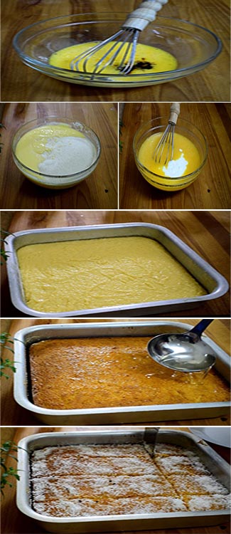 - أخرجي البسيمة من الفرن وأضيفي لها الشربات مباشرة وانتظري دقائق لتتشرب منه.