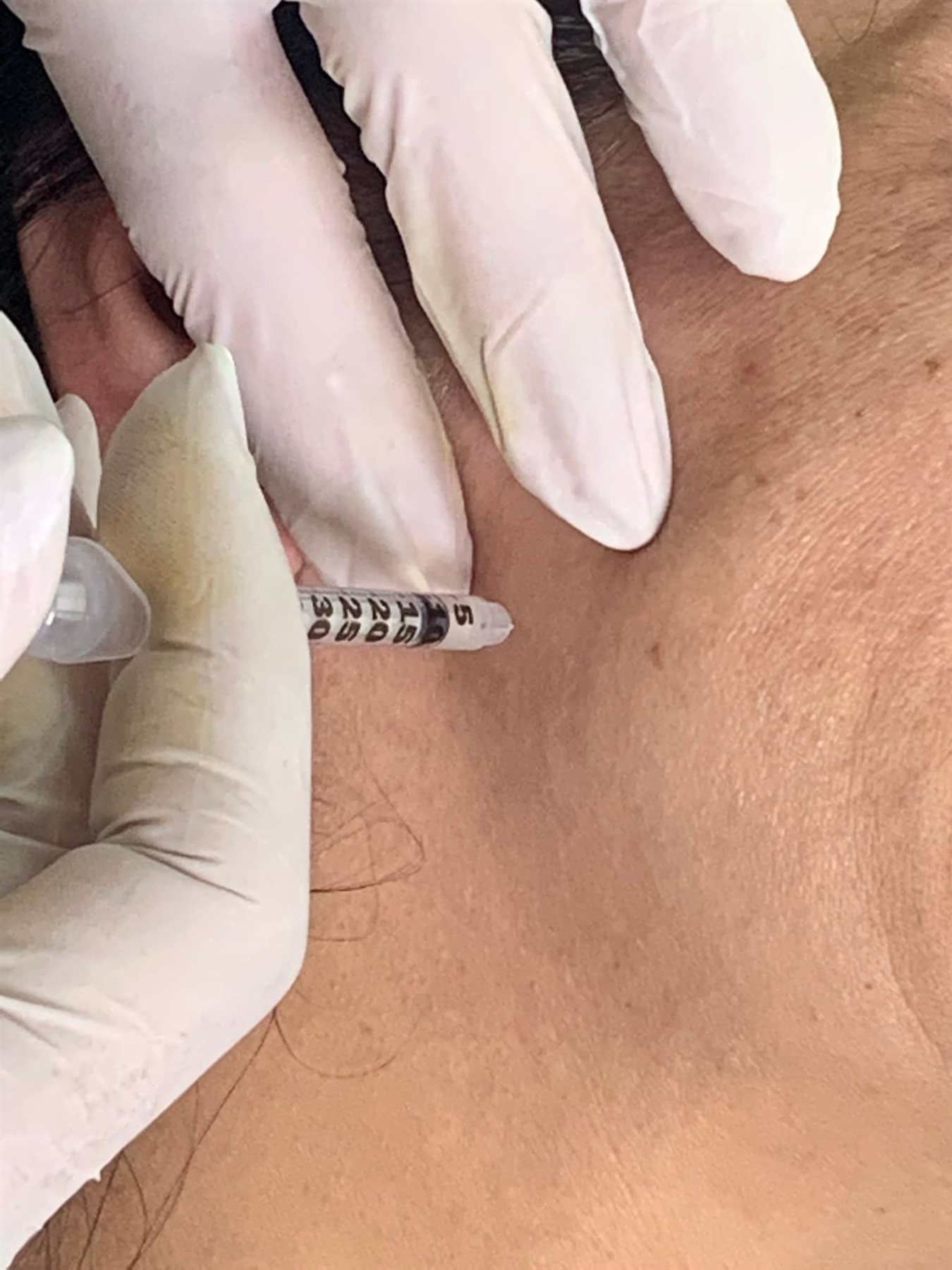إلا أنه بعد اكتشاف البوتوكس تم أستخدامه حديثًا لعلاج هذه الحالة وذلك عن طريق حقن عضلات الفك المسؤولة عن الحالة بجرعات مخففة تكفي لتخليص المريض من الحالة لفترة 3 – 6 أشهر.