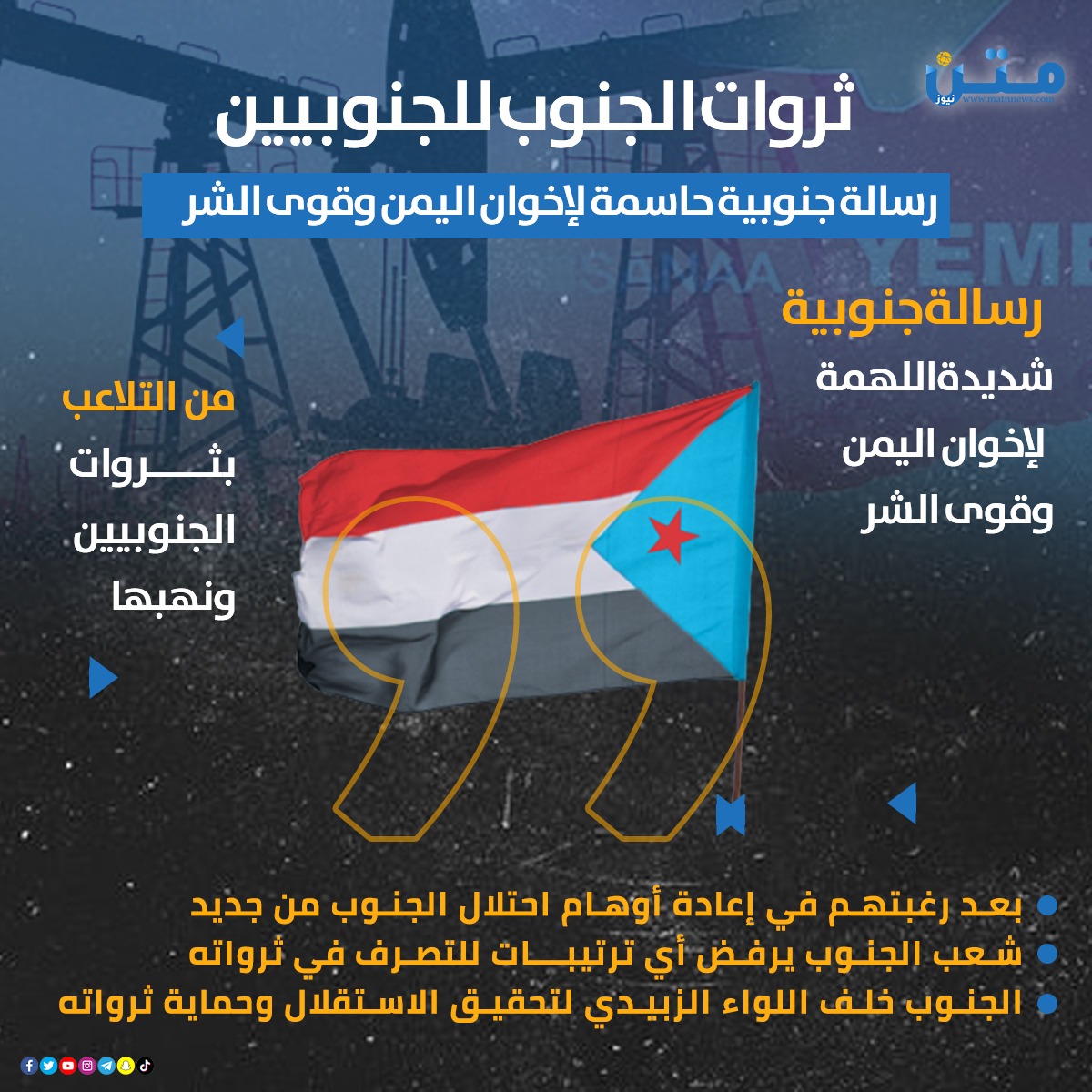 ثروات الجنوب للجنوبيين.. رسالة جنوبية حاسمة لإخوان اليمن وقوى الشر (انفوجراف)