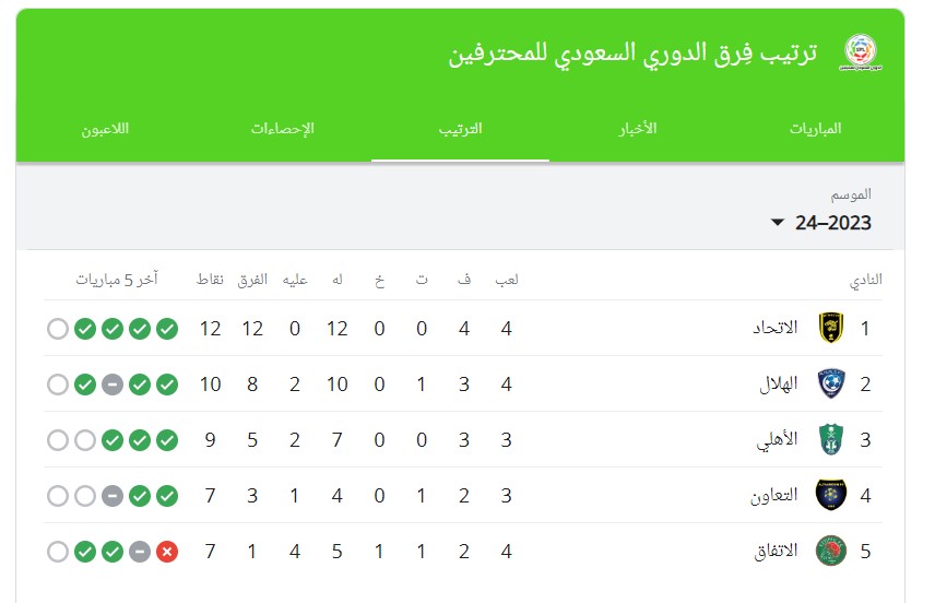 بالنقاط.. ترتيب الدوري السعودي للمحترفين 2024