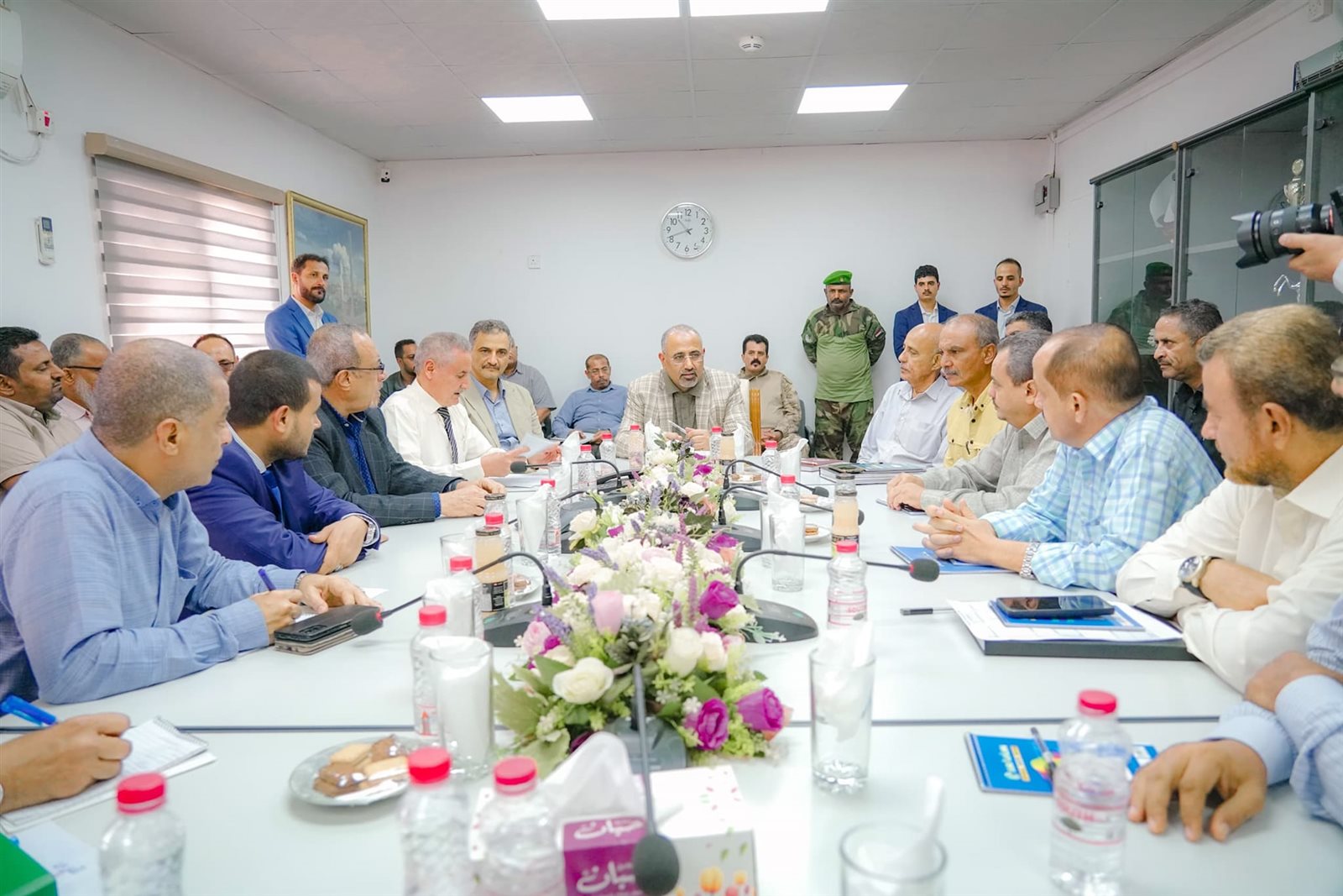 وعقد الزُبيدي، فور وصوله لمقر الشركة، بمعية وزير الدولة محافظ العاصمة عدن، أحمد حامد لملس، اجتماعًا بإدارة وكوادر الشركة، مطلعا إياهم على جزء من مخرجات اجتماع اللجنة العُليا للموارد السيادية والمحلية، والإجراءات والقرارات التي اتخذت لتفعيل عمل المصافي.