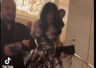 حورية أثناء هبوطها على الدرج “السلم” سقطت وحاول المتواجدين في الحفل مساعدتها في الوقوف، وطلبت هي منهم أن يتركوها لتنهض بنفسها.