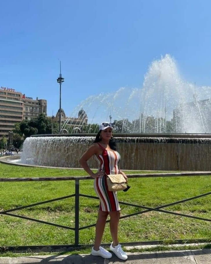 ومن الناحية الجمالية تعتمد على وضع الماكياج بلمسات بسيطة من الألوان الهادئة، تاركة خصلات شعرها منسدلا على كتفيها.