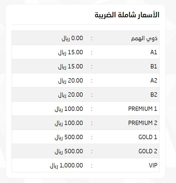 تبدأ أسعار تذاكر مباراة السوبر الإفريقي بين الأهلي واتحاد الجزائر من 15 ريال "ما يعادل 123 جنيه مصري"، وتصل إلى 1000 ريال أي ما يعادل 8221 جنيه مصري.