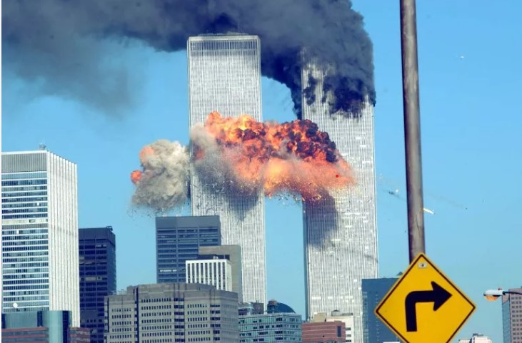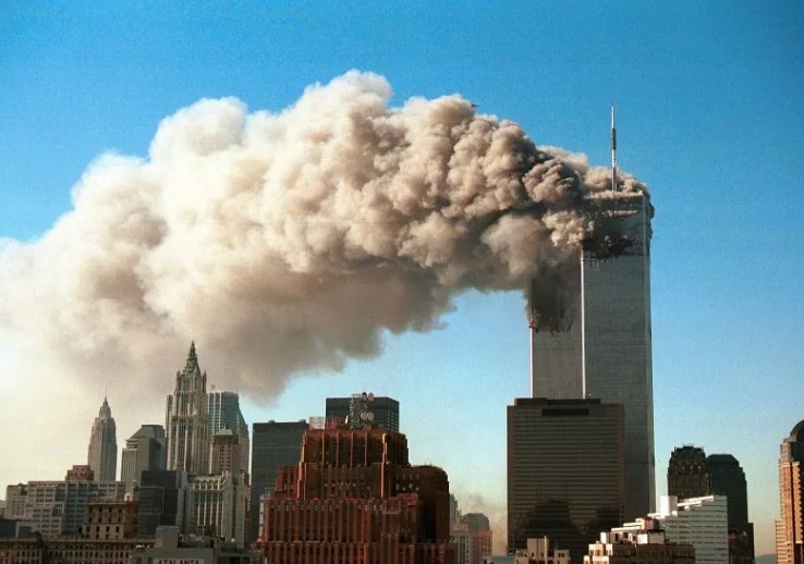 حيث أسقط أكثر من ثلاثة آلاف قتيل فى هجمات متزامنة على برجى مركز التجارة العالمى فى نيويورك بطائرتين تم اختطافهما، بينما استهدف هجوم آخر مبنى البنتاجون فى فرجينيا، وسقطت طائرة أخرى مختطفة فى ولاية بنسلفانيا.