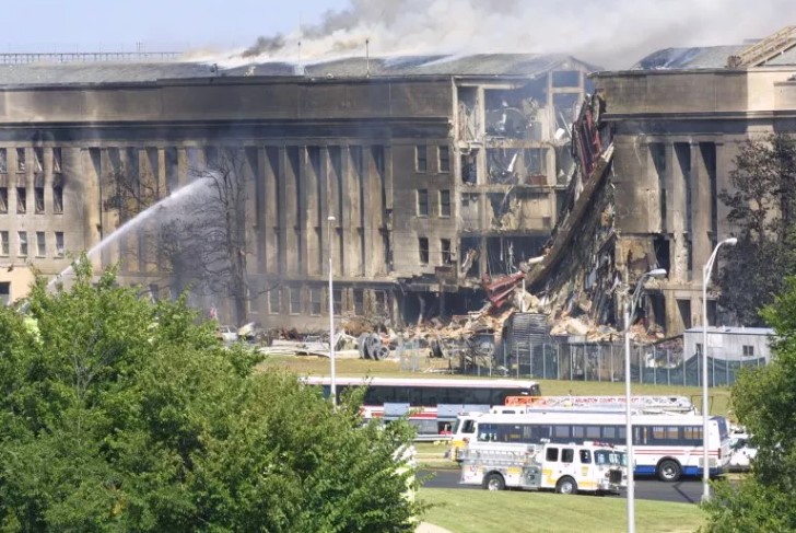 فى تمام الساعة 9:37 صباحا، سقطت طائرة ثالثة فوق مبنتى البنتاجون فى فرجينيا وأحدث ضررا بالغا بجزء من المبنى.