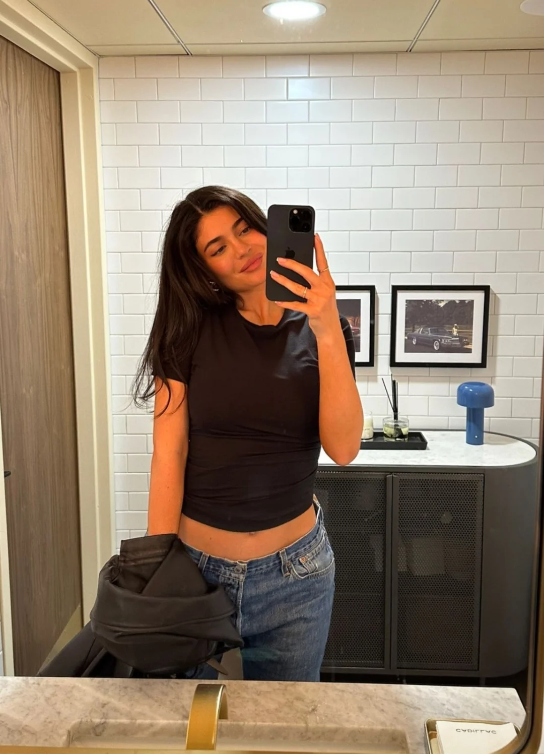 ارتدت توب جرئ ومكشوف باللون الاسود.. كايلي جينر بإطلالة مثيرة أمام المرآة