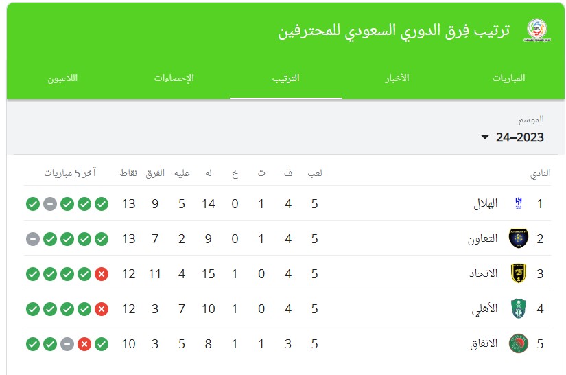 الدوري السعودي للمحترفين.. مواعيد جميع مباريات أهلي جدة.. وترتيب البطولة 2024