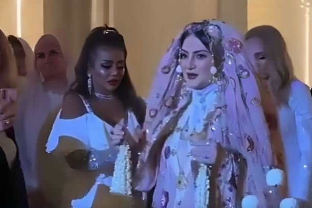 وظهرت في مقطع الفيديو والذي وثق بعض اللحظات البسيطة من زفافها، وهي ترتدي الزي الرسمي للمملكة العربية السعودية، وكانت تتمايل مع النغمات.