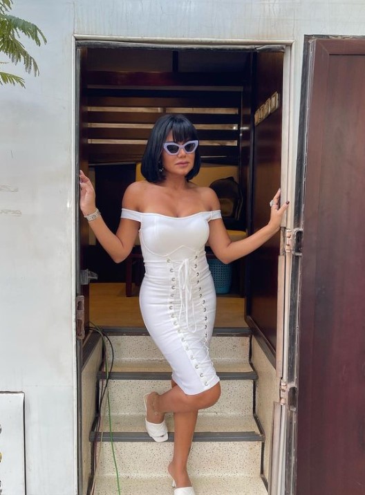 حيث ظهرت بشعر قصير، وبفستان أبيض اللون متوسط الطول أوف شولدر، مع مكياج أظهر جمال ملامح وجهها، وعلقت بالقول: "يا ترى مين دي؟؟ وبتعمل ايه… وناويه علي ايه؟".