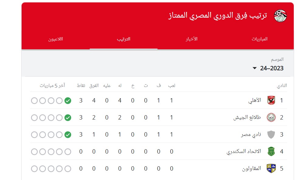 تزايد البحث على مواقع التواصل الاجتماعي حول جدول ترتيب الدوري المصري 2024
