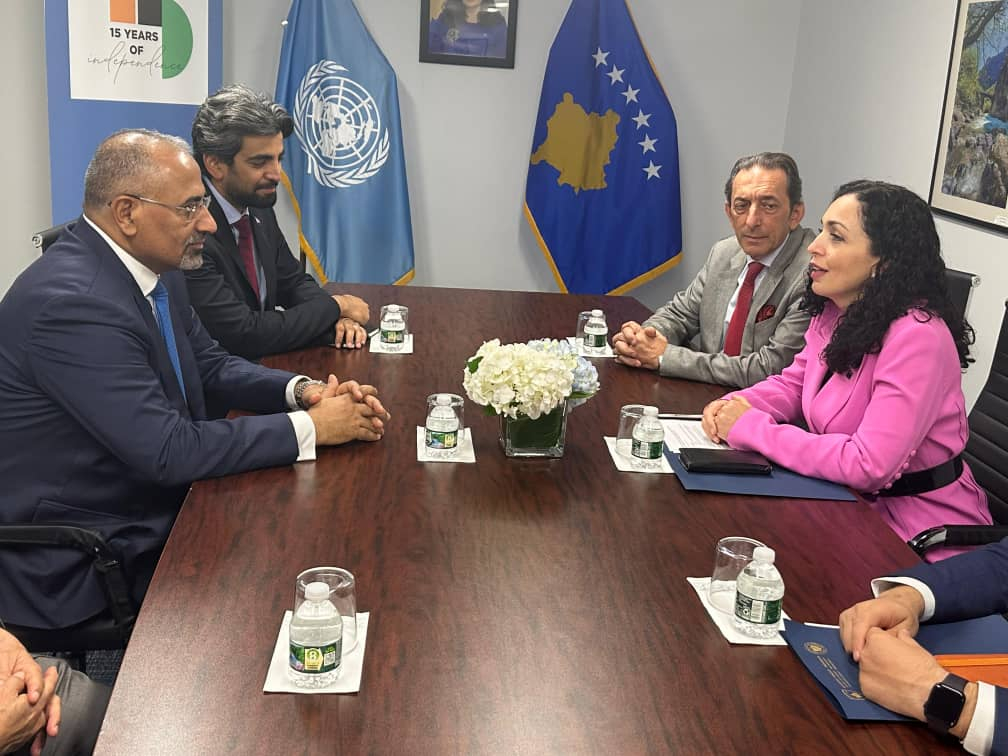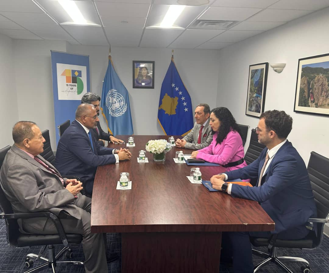 عقد اللواء عيدروس الزُبيدي رئيس المجلس الانتقالي الجنوبي، نائب رئيس مجلس القيادة الرئاسي في اليمن، جلسة مباحثات مع فيوسا عثماني سادريو رئيسة جمهورية كوسوفو، على هامش مشاركته في الدروة 78 للجمعية العامة للأمم المتحدة.