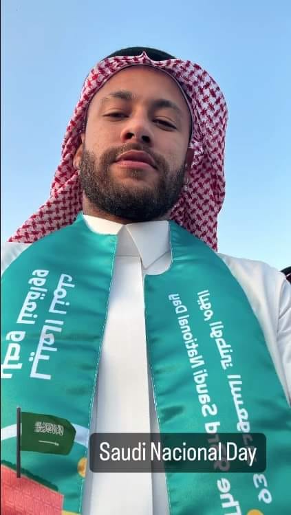 كما نشر نيمار صورة عبر حسابه الرسمي على موقع "إنستجرام"، بالزي التقليدي السعودي الثوب والشماغ وعلق عليها: "اليوم الوطني السعودي".