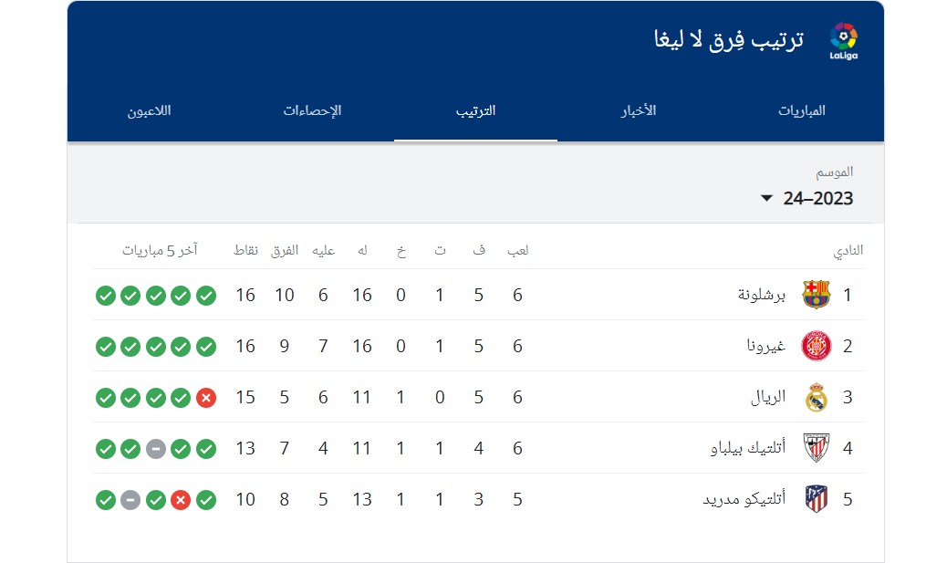 ترتيب الدوري الاسباني 2023_ 2024