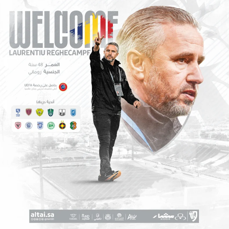 وتعاقد نادي الطائي مع المدرب الروماني لورينت ريجيكامب، البالغ من العمر 48 عامًا، لموسم رياضي واحد.