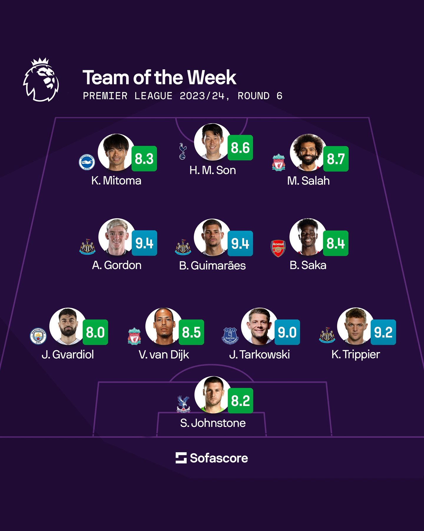 وجاء التشكيل المثالي للجولة السادسة من الدوري الإنجليزي كالتالي:
